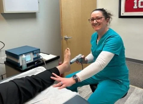 Shockwave therapy is an FDA approved non-invasive treatment that stimulates the body’s natural healing process in athletes and individuals of all ages. It can relieve pain and promote healing of injured tendons, ligaments, and other soft tissues by releasing growth factors in the injured tissue and can be used to treat many acute and chronic musculoskeletal conditions such as plantar fasciitis, tendonitis, sesamoiditis, Morton’s Neuromas, shin splints, and stress fractures.